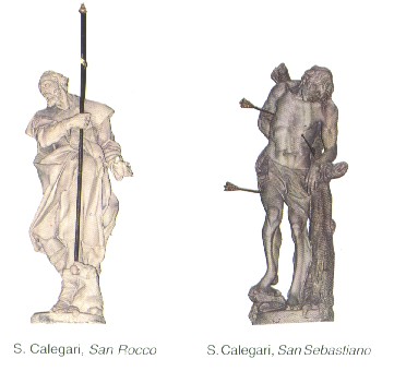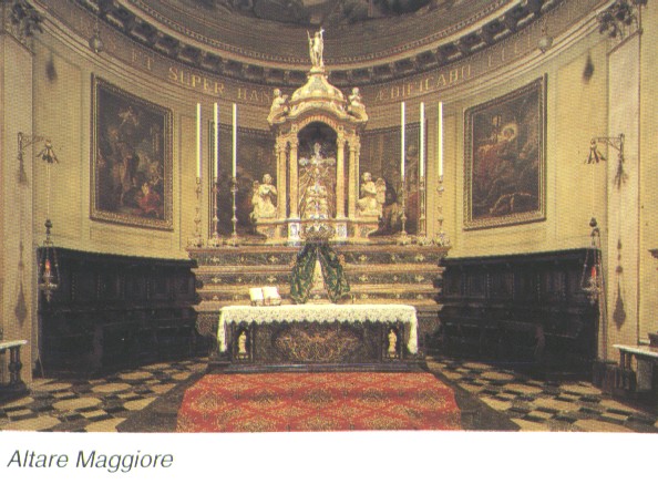 Parrocchia1.jpg (83431 byte)Ricordata per la prima volta nel 1230, la parrocchiale di San Pietro aveva l’abside rivolta ad oriente, senza facciata,Casa-Parrocchiale.jpg (145989 byte) perché appoggiata alla casa parrocchiale (quella attuale è stata modificata nel Cinquecento ed è iscritta nell’elenco ufficiale degli edifici monumentali: sulla volta del salone di rappresentanza contiene un ciclo di affreschi di Antonio Cifrondi, datati 1691, con le storie di Simon Mago). Secondo i verbali delle visite pastorali, aveva la cappella maggiore affrescata da Giovan Battista Castelli e quella di San Rocco affrescata da Lorenzo Lotto: opera questa quasi certamente contemporanea al ciclo di Santa Barbara, del 1524. Era lunga quasi 18 metri e larga poco più di dieci. Nel 1680, il parroco Francesco Sonzogni, a causa dell’aumento della popolazione, pensò ad un ingrandimento. Ne ribaltò l’orientamento e così andarono distrutti gli affreschi: questa seconda chiesa arrivava fino al limite orientale dell’attuale cupola. Fu consacrata nel 1703 ed ebbe il titolo di prepositurale (ed il parroco quello di prevosto). Sulla facciata erano collocate quattro statue: San Pietro e San Paolo (oggi sul tetto a delimitare le dimensioni originali dellaParrocchia.jpg (40383 byte) seconda chiesa), San Rocco e San Sebastiano, all’interno, che sono opera dello scultore bresciano Sante Calegari.